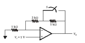 Question 10: Consider the op-amp shown in figure below: If $V_0$ is ' $x$ ' when switch is open after closed the switch, the output $V_0$ is