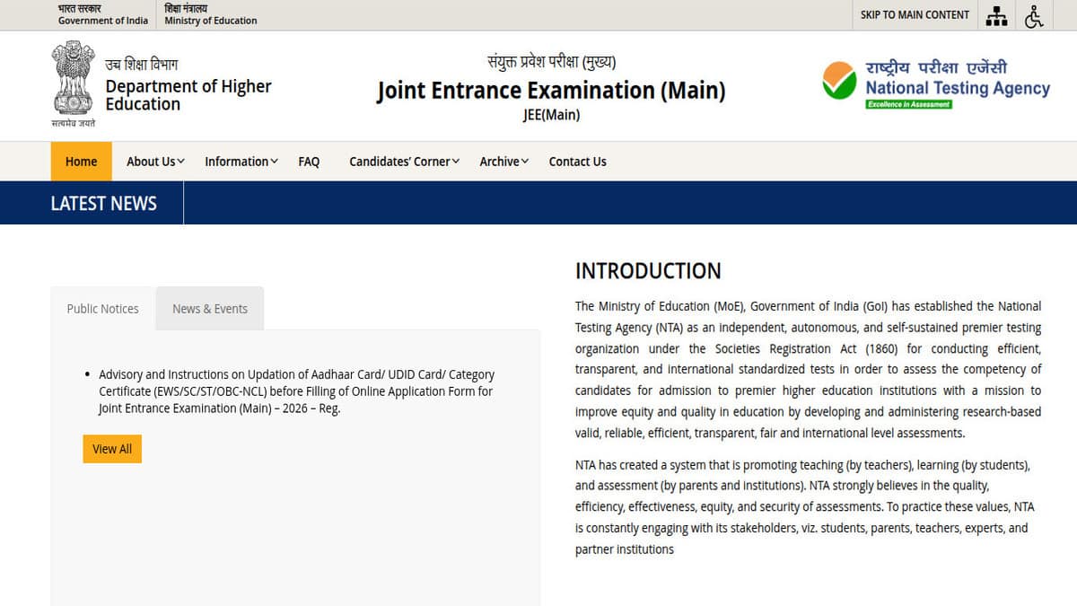 Candidates will be able to register for the JEE Main 2026 for admission to engineering, architecture and planning courses at IITs, and other premier institutes through the official website at jeemain.nta.nic.in.