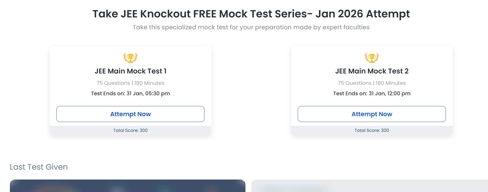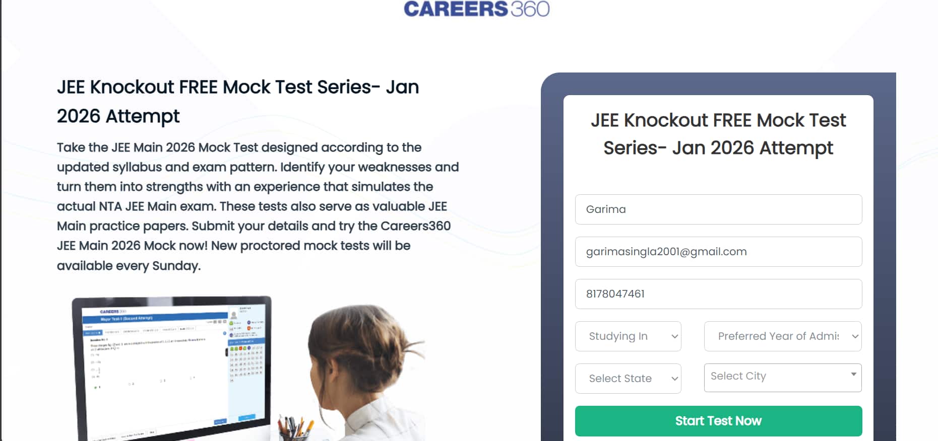 1. Click on the Careers360 JEE Main free mock test link i.e. https://learn.careers360.com/classroom/jee-knockout-free-mock-test-series-jan-2026-attempt