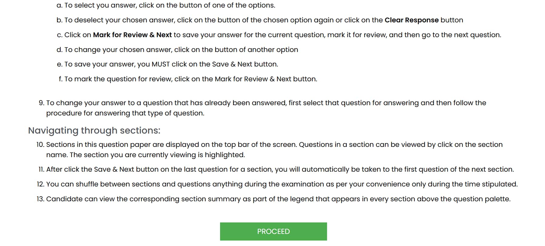 After clicking on the Save & Next button on the last question for a section, candidates will automatically be taken to the first question of the next section.