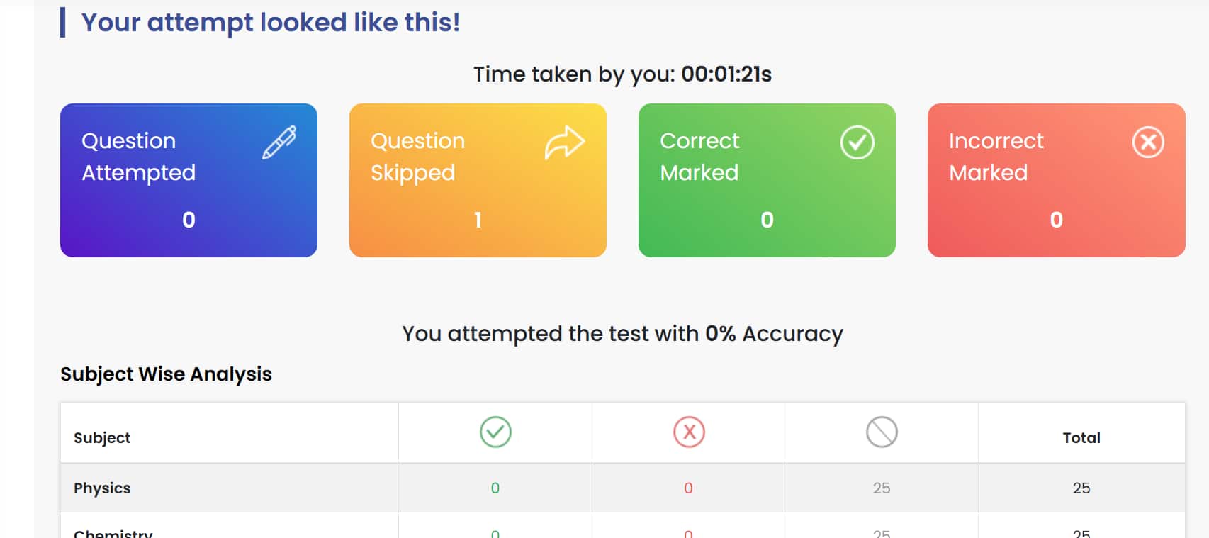 Questions to Attempt | 75 (25 per subject),