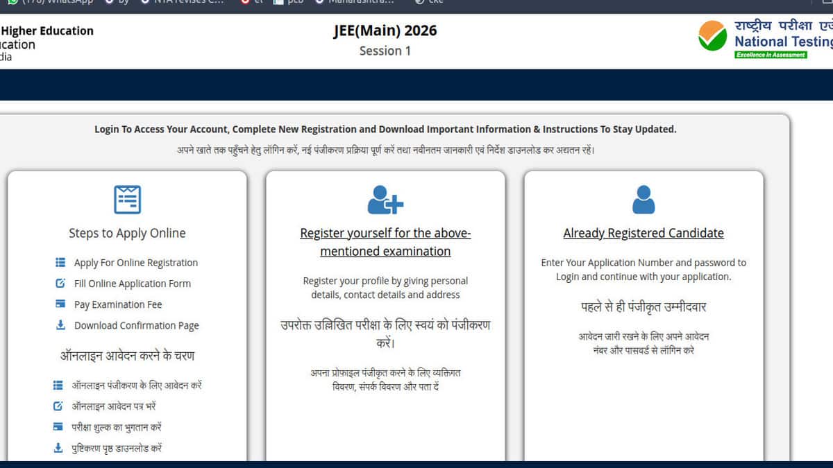 The National Testing Agency (NTA) has activated its form correction facility for JEE Mains 2026 application form on its official website at jeemain.nta.nic.in. Candidates are required to make corrections to their application forms by today