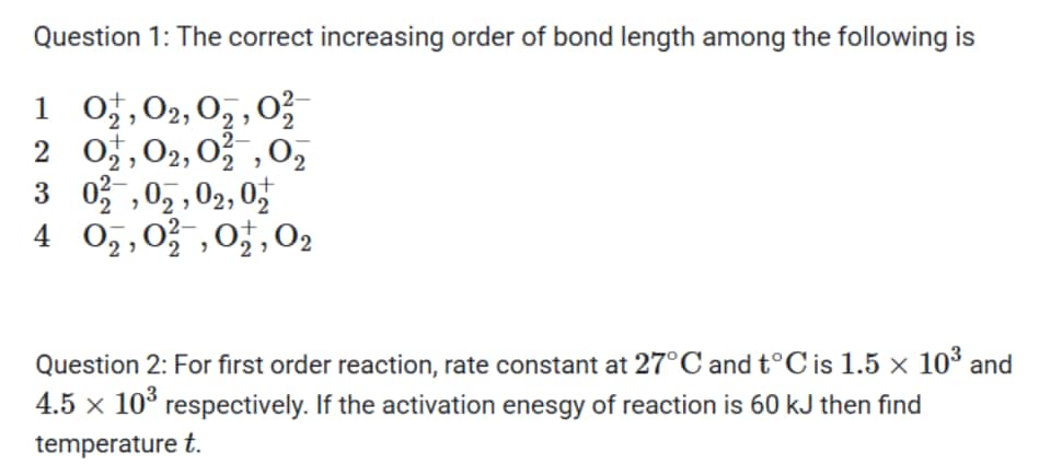 $2 \mathrm{O}_2^{+}, \mathrm{O}_2, \mathrm{O}_2^{2-}, \mathrm{O}_2^{-}$