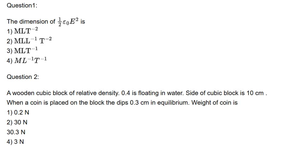 2) $\mathrm{MLL}^{-1} \mathrm{~T}^{-2}$