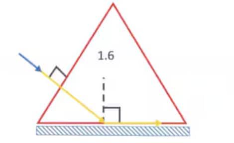 Q1. In an equilateral prism, the path of a ray is shown. Determine the refractive index.
