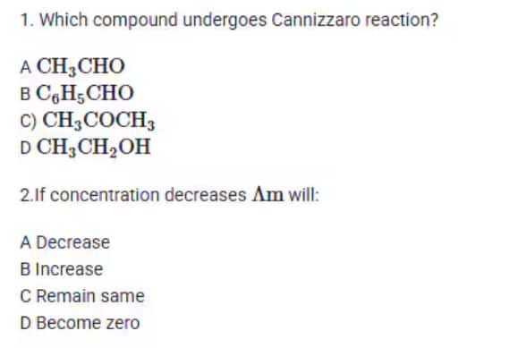 Important Chemistry Questions from MHT CET CMS 15th April Question Paper