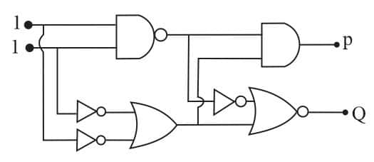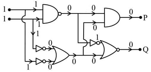 Question 18: In the digital circuit shown in the figure, for the given inputs the P and Q values are :