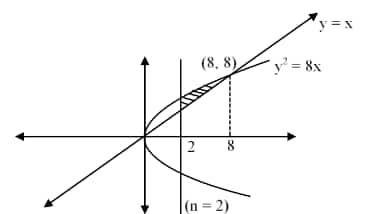 Question 19: Let $\alpha$ be the area of the larger region bounded by the curve y $2=8 x$ and the lines $y=x$ and $x=2$ which lies in the first quadrant. Then the value of $3 \alpha$ is equal to