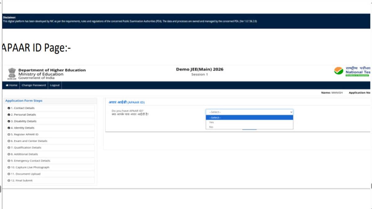 Apaar ID in JEE Main 2026 registrations. (Image source: Official)