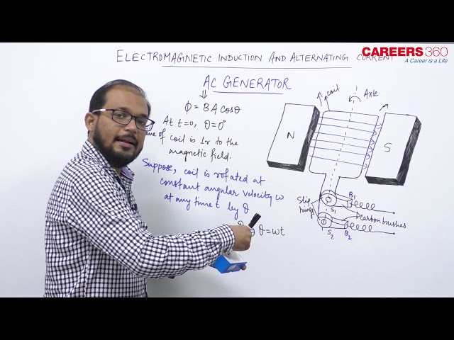 - Brushes: Two carbon brushes $\left(B_1\right.$ and $\left.B_2\right)$, are pressed against the slip rings. The brushes are fixed while slip rings rotate along with the armature. These brushes are connected to the load through which the output is obtained. the coil is determined by Fleming's right-hand rule.