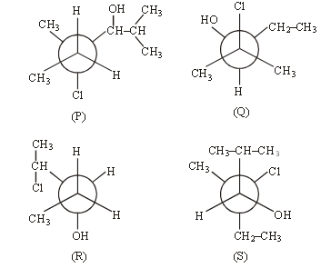 Newman projection P, Q, R and S are shown below. Which one of the following represent identical molecule?