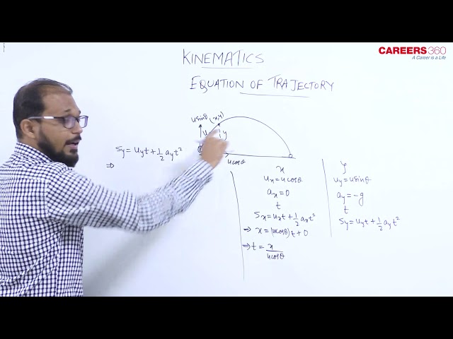 An initial velocity of $(2 \hat{i}+\sqrt{3} \hat{j}) \mathrm{m} / \mathrm{s}$ is given to a projectile, which $\hat{i}$ is along the ground and $\hat{j}$ is along the vertical. The equation of its trajectory is if $g=10 \mathrm{~m} / \mathrm{s}^2$.