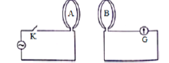 The diagram below shows two coils A and B placed parallel to each other at a very small distance. Coil A is connected to an AC supply. G is a very sensitive galvanometer. When the key is closed: