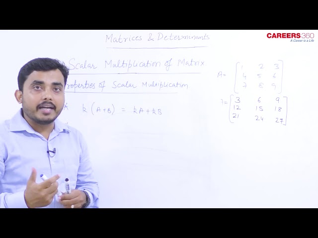 Let k be any scalar number, and $A=\left[a_{i j}\right]_{m \times n}$ be a matrix. Then the matrix is obtained by multiplying every element A by a scalar k and denoted as kA.