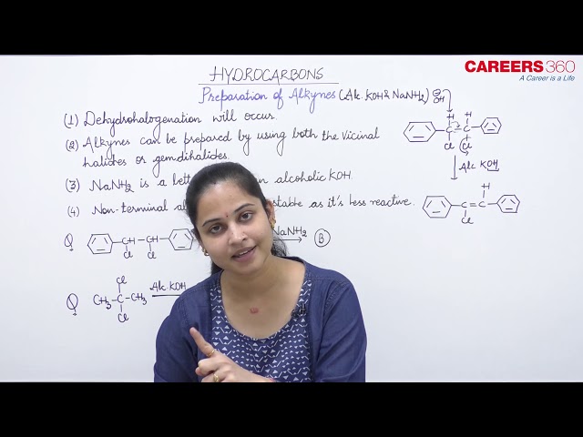Vicinal dihalides: Vicinal dihalides on treatment with alcoholic potassium hydroxide undergo dehydrohalogenation. One molecule of hydrogen halide is eliminated to form alkenyl halide which on treatment with sodamide gives alkyne.