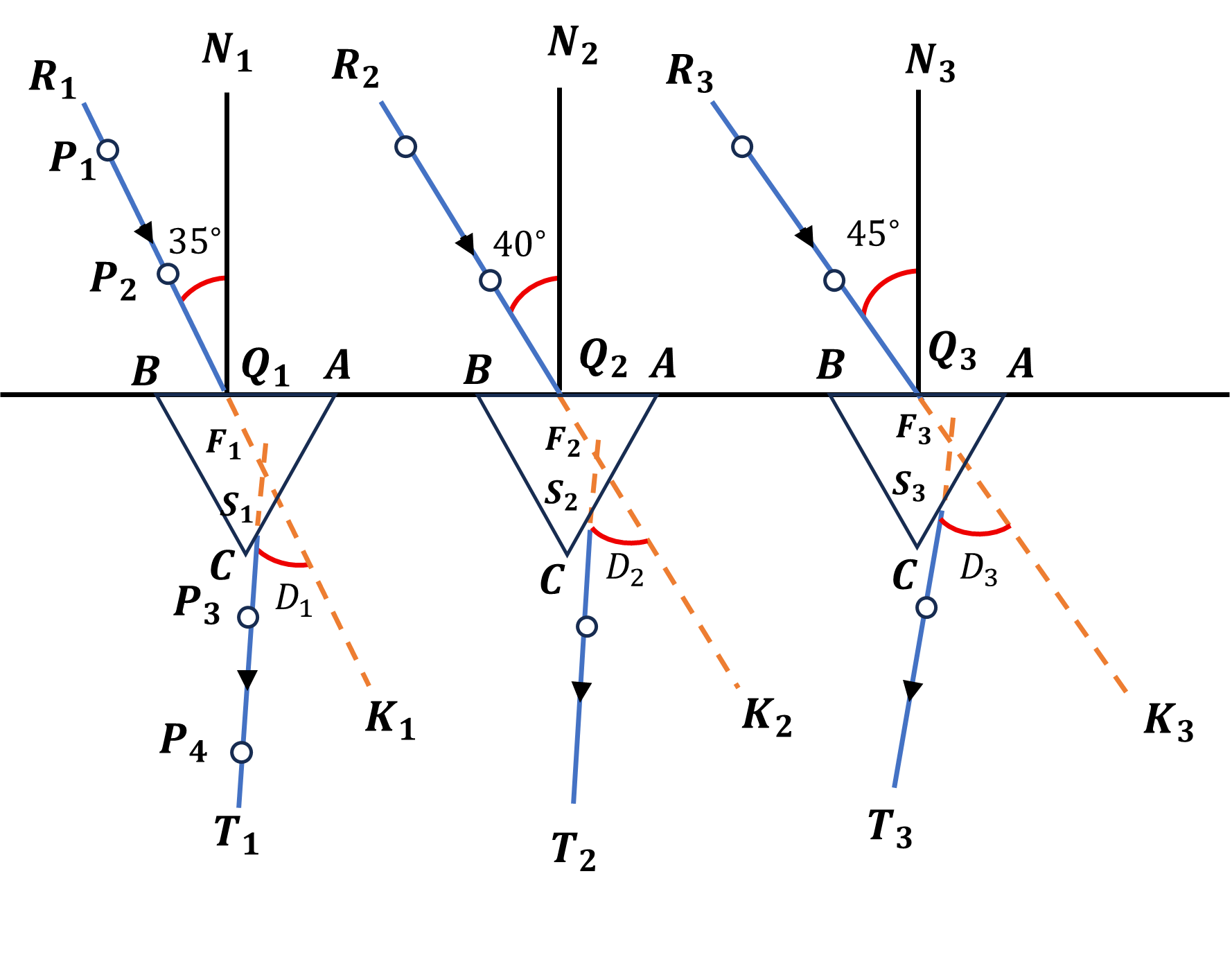 These give angle of deviation $\mathrm{D}_1, \mathrm{D}_2, \mathrm{D}_3, \ldots$