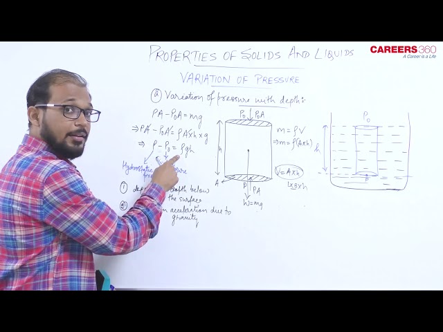 $\mathrm{P}=$ Hydrostatic pressure for a point at depth h below the upper surface